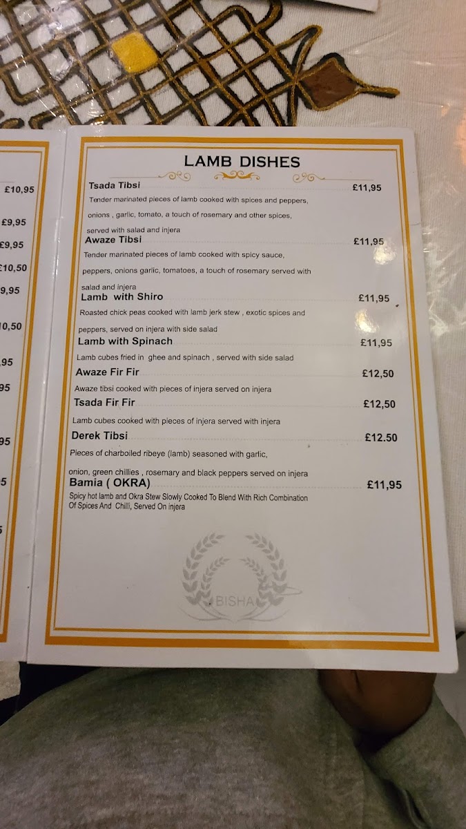 Welcome to Bisha Eritrean Restaurant, a culinary gem located at 544 Holloway Rd, London. Specializing in authentic Eritrean cuisine, Bisha invites you to indulge in a vibrant menu that celebrates rich flavors and textures. Meat lovers will delight in the Chicken Tibsi—succulent chicken marinated with a unique blend of savana spices—or the tender Tsaeda Tibsi, featuring expertly cooked lamb. Vegetarian options are equally enticing, with dishes like the hearty Ful Medemes and the satisfying mixed platter, showcasing a melange of spiced lentils and fresh vegetables.